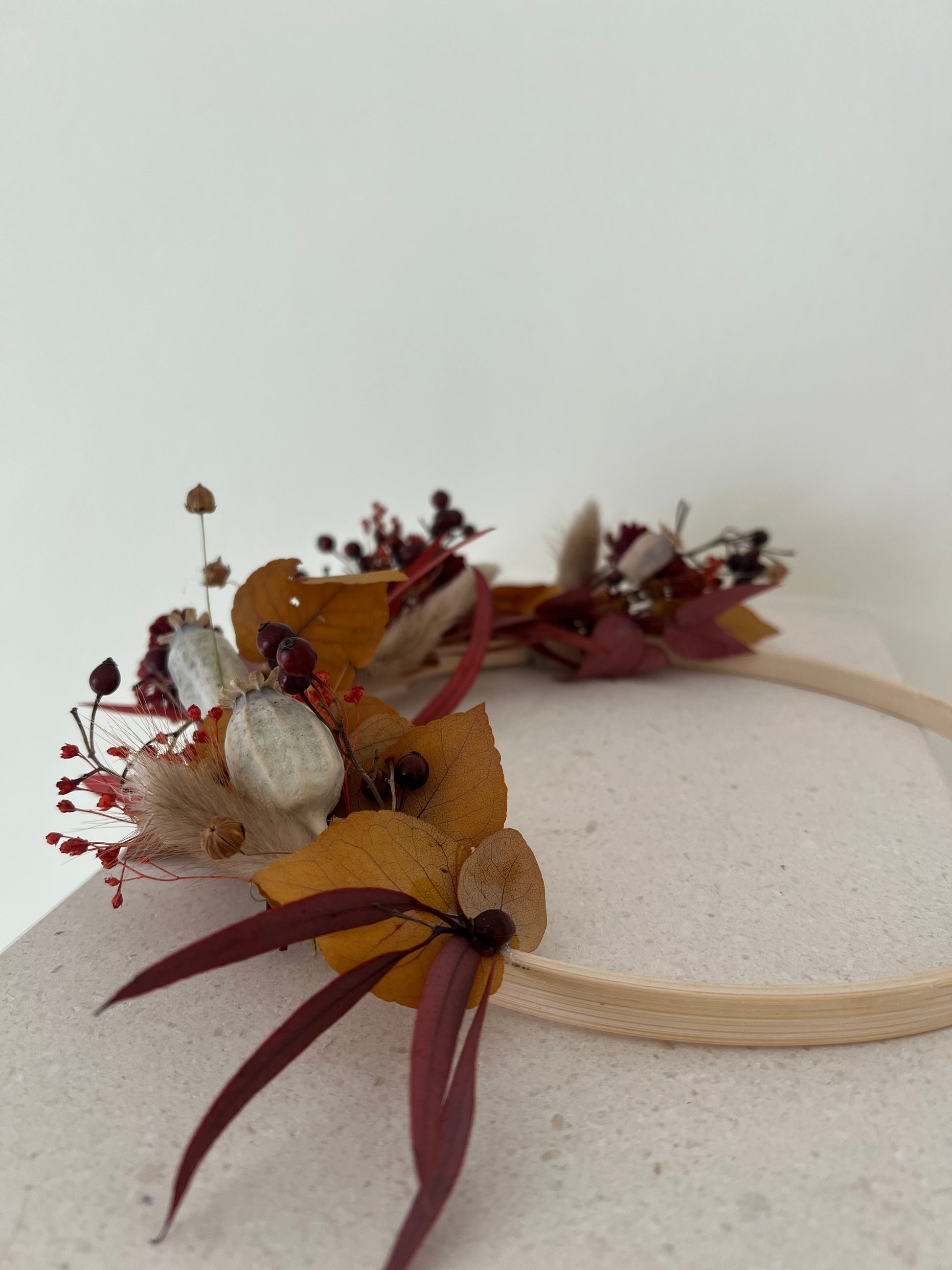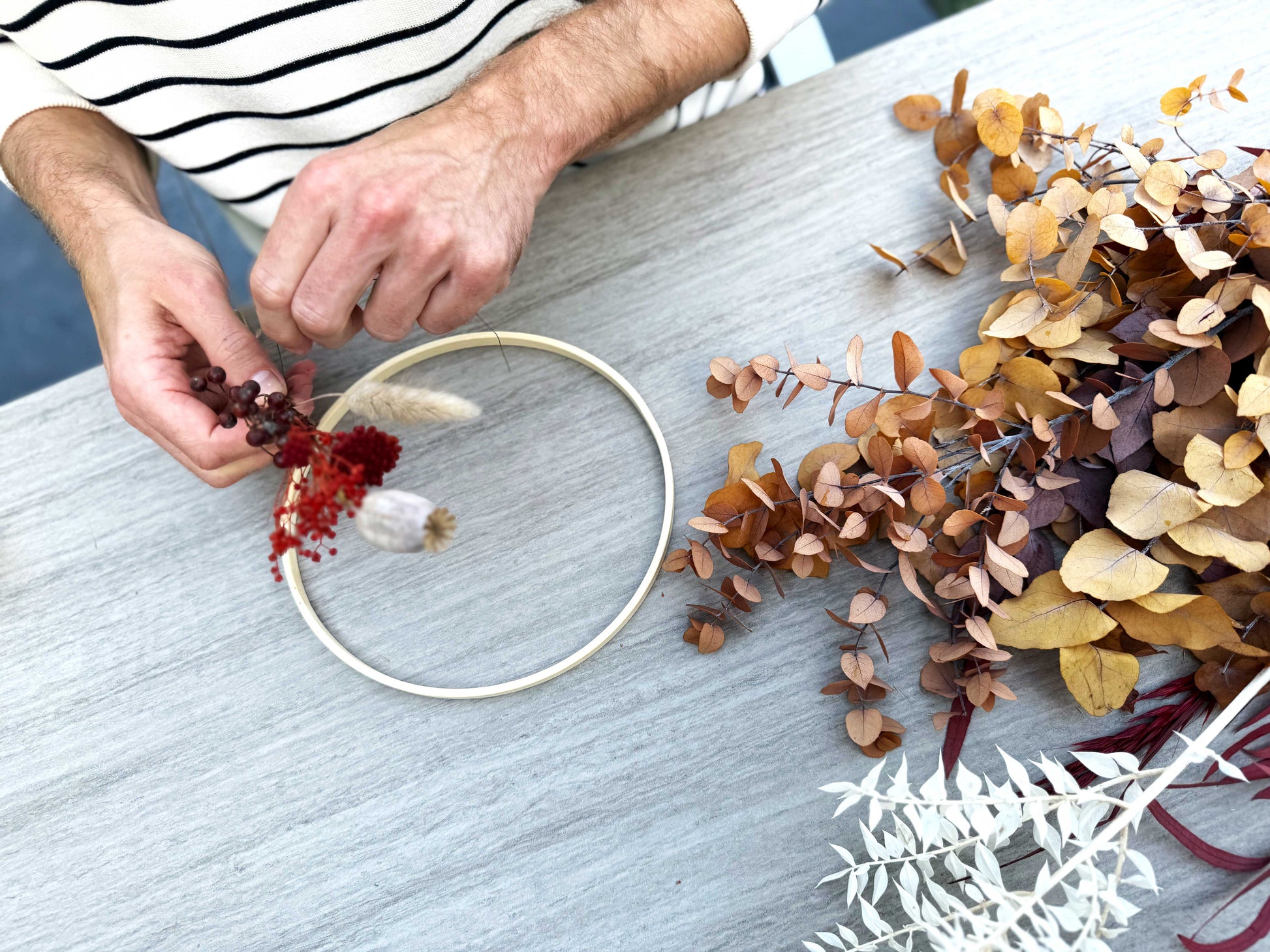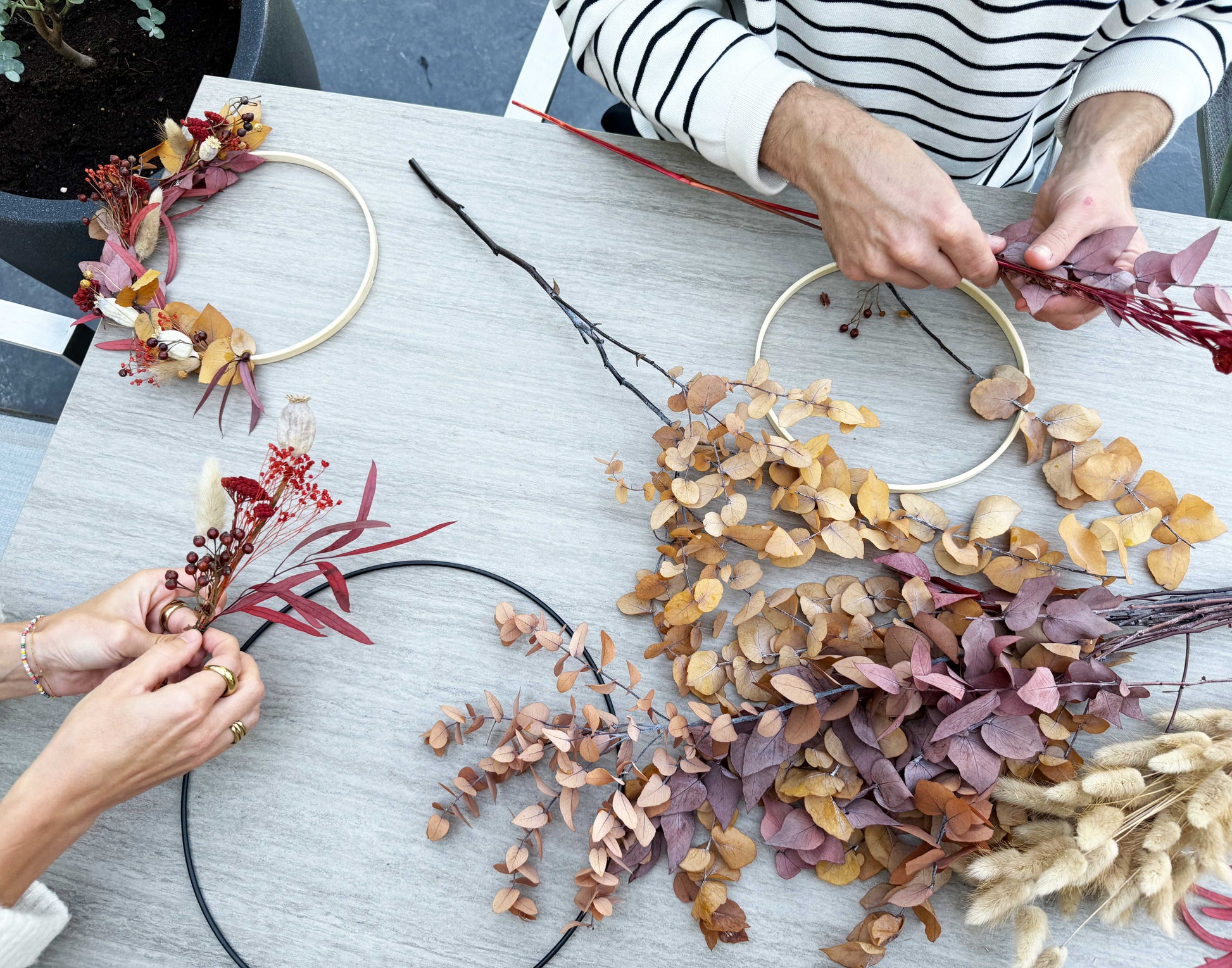 Bei diesem Workshop gestaltest du deinen eigenen bezaubernden herbstlichen Trockenblumenkranz. Hier dreht sich alles um Farbe, Form und tolle Naturmaterialien. Lass deiner Kreativität freien Lauf und kombiniere wunderschöne Trockenblüten und Gräser zu einem individuellen Schmuckstück. Dein herbstliches Highlight ist perfekt, wenn du deinem Zuhause einen neuen Look verleihen möchtest oder zum Verschenken.