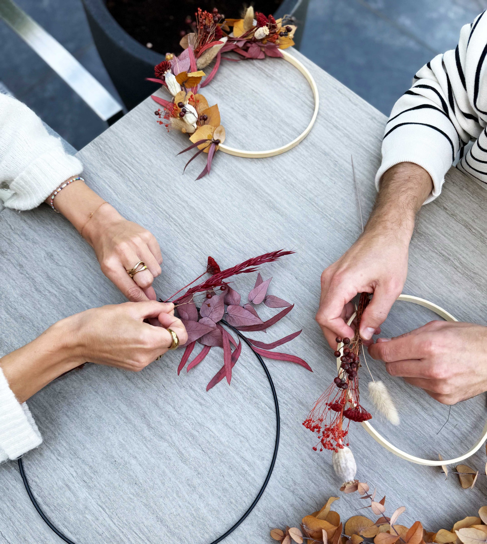 Entdecke die Freude am gemeinsamen Gestalten und kreiere ein wunderschönes Stück aus Trockenblumen!